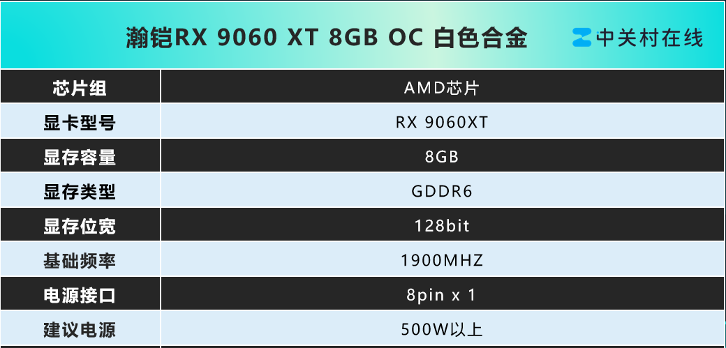 2500元价位甜品卡,首选瀚铠RX 9060 XT 8GB OC 白色合金